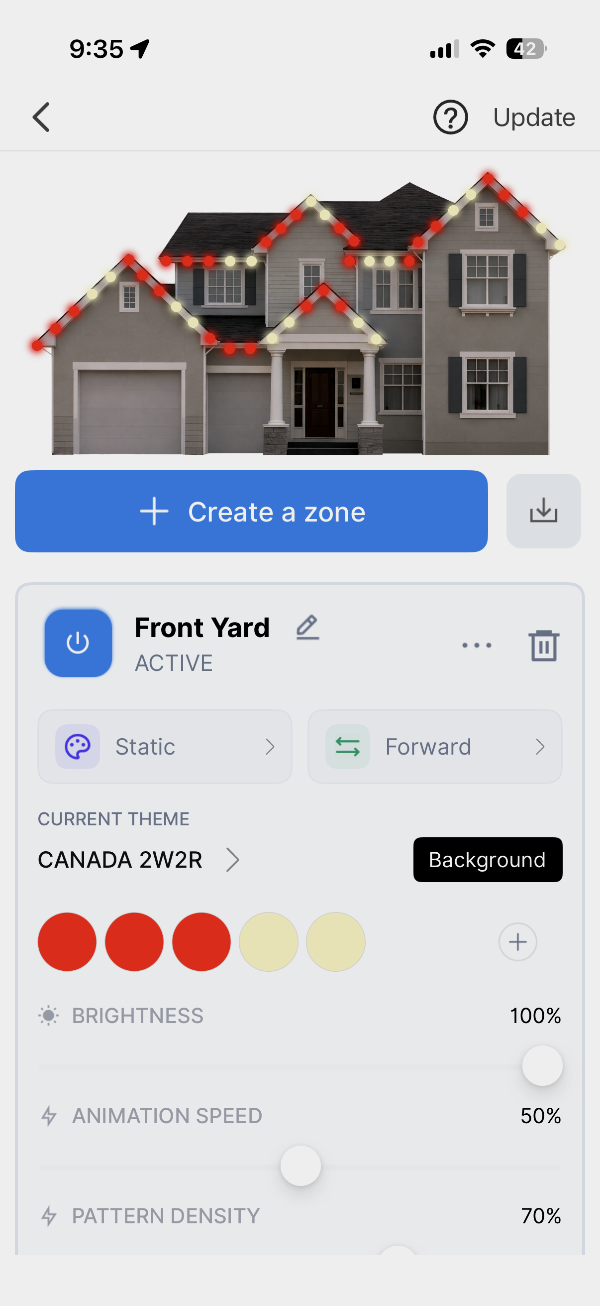 Adjust speed, direction, and intensity. Your permanent lights and exterior holiday lights come alive with over 100 animations at your fingertips. Control via WiFi and Bluetooth for seamless interactions from your mobile device.
